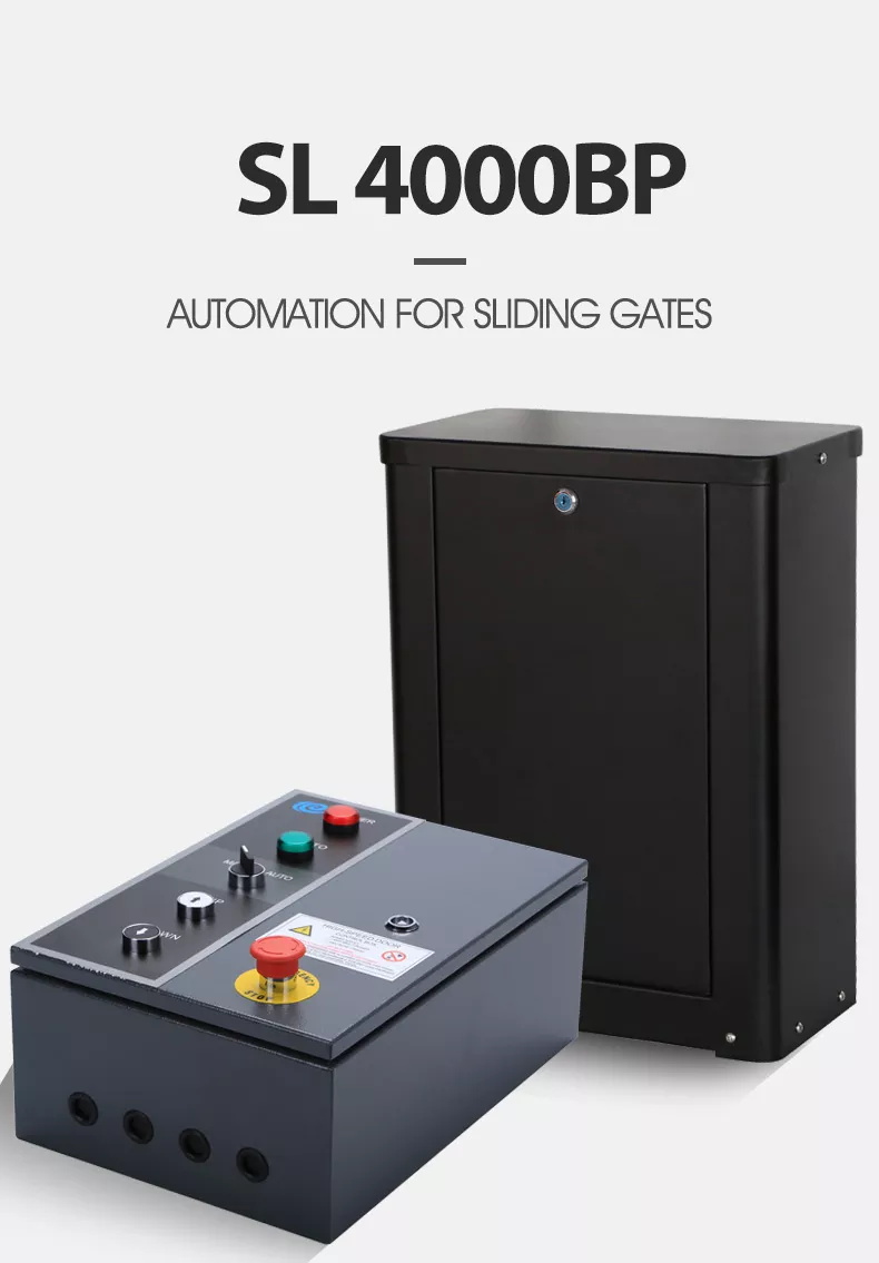 SL4000BP sliding gate opener is applicable to gate weight less than 4000kg.The drive mode adopts the rack and gear transmission. This gate opener must be installed inside the enclosure or yard for protection.